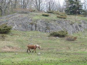 pony in front of rock hill